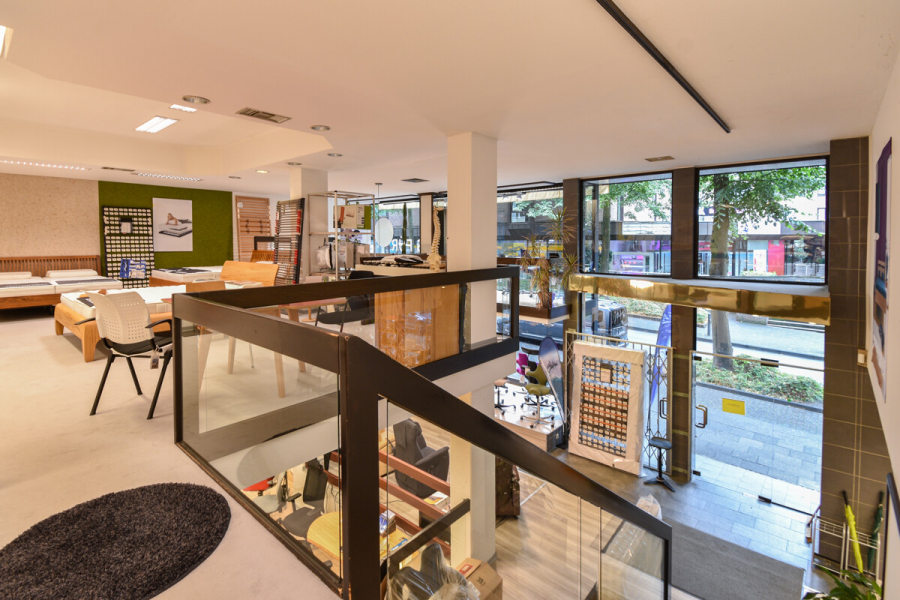 Dieses vielseitig nutzbare Ladenlokal bietet auf ca. 285 m² Nutzfläche ein modernes und flexibles Raumkonzept über zwei Ebenen (Splitlevel) im Erdgeschoss und Obergeschoss. Die großzügigen, offen gestalteten Flächen eignen sich hervorragend als Showroom, Büroeinheit oder für Dienstleister. Aktuell ist diese Fläche Teil eines ca. 450 m² großen Ladenlokals – eine Teilung in zwei separate Einheiten ist jedoch möglich.