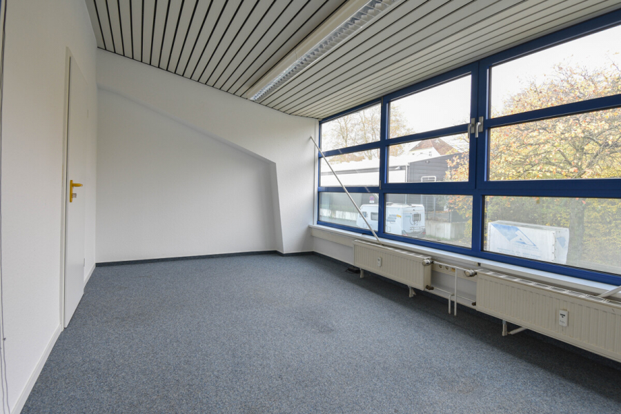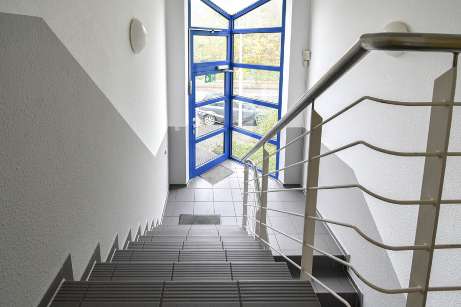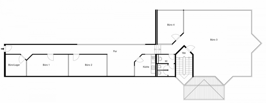 Der Zugang erfolgt über ein separates Treppenhaus mit eigenem Eingang. Von dort führt ein Flur in das erste Zimmer, welches sich flexibel als Büro oder auch als Lager- bzw. Archivfläche nutzen lässt. Im weiteren Verlauf des Flurs befinden sich zwei zusätzliche Büroräume.