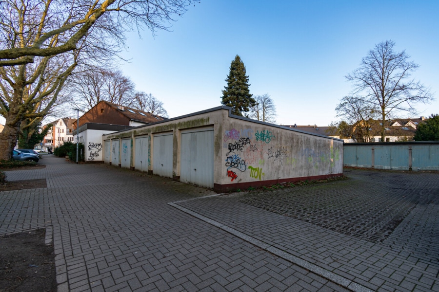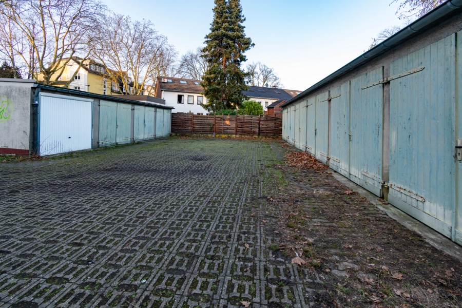 Aktuell ist das Grundstück mit einem Garagenhof bestehend aus 15 Einheiten bebaut. Dieser generiert derzeit eine Jahresnettokaltmiete von 7.691,04 € und bietet somit eine laufende Einnahmesituation bis zur möglichen Umsetzung eines Bauvorhabens.