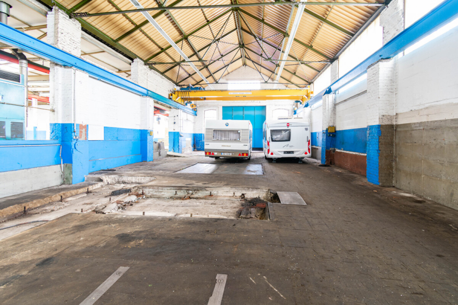 Insgesamt handelt es sich um eine gut ausgestattete Gewerbeimmobilie mit ausgewogener Flächenverteilung, die durch ihre technische Ausstattung, die vorhandene Wartungsgrube, die Kranbahnen sowie den geschichtsträchtigen Standort überzeugt.