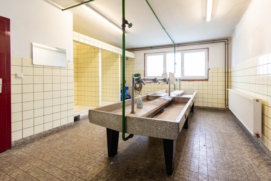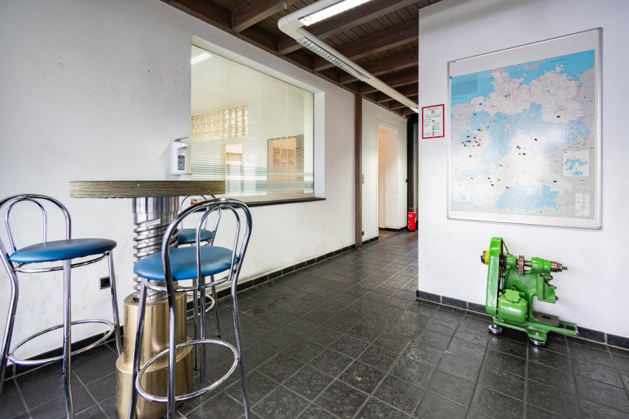 Ergänzend stehen funktional angeordnete Sozialräume mit Sanitäranlagen, Umkleiden und Aufenthaltsraum zur Verfügung. Direkt an die Halle angeschlossen befindet sich ein Bürogebäude mit direktem Zugang zur Produktionsfläche. Die Büroeinheit umfasst ca. 111 m² und ist in vier Büroräume, eine Teeküche sowie ein WC gegliedert.