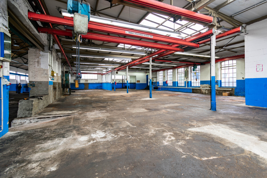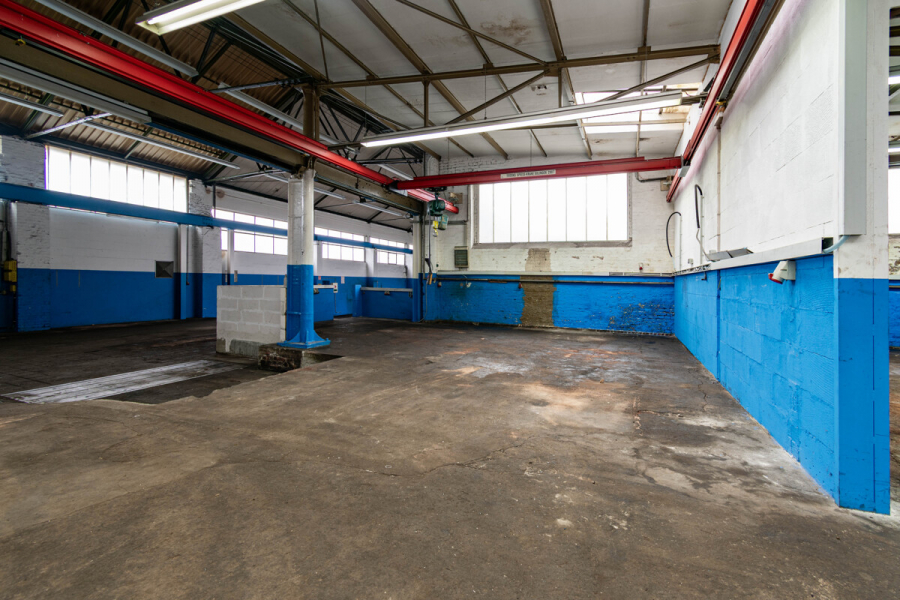 Vielseitige Produktions- und Gewerbeimmobilie mit Kranbahnen, Wartungsgrube und Bürotrakt.