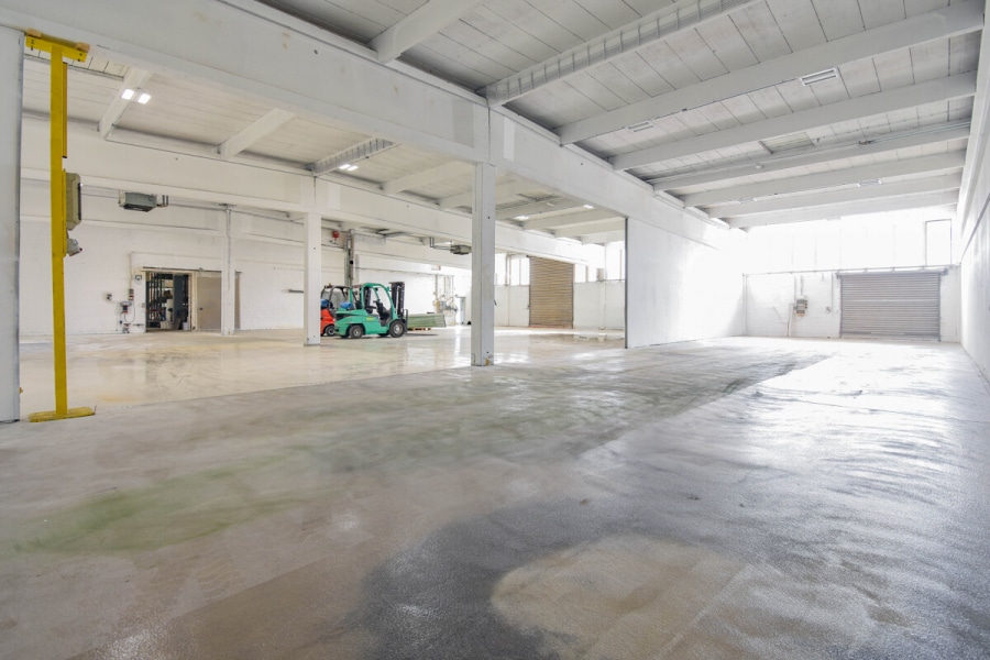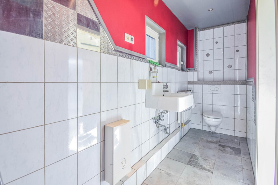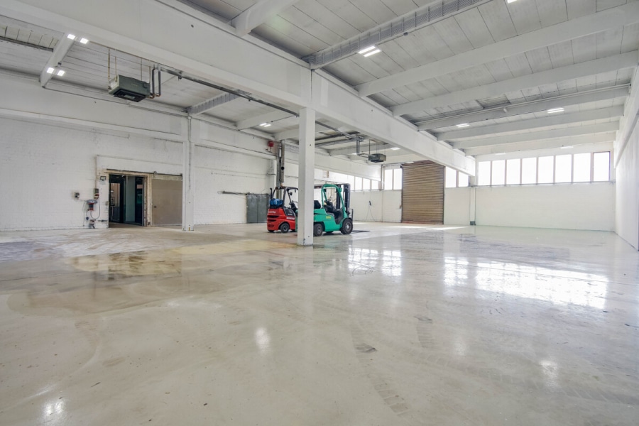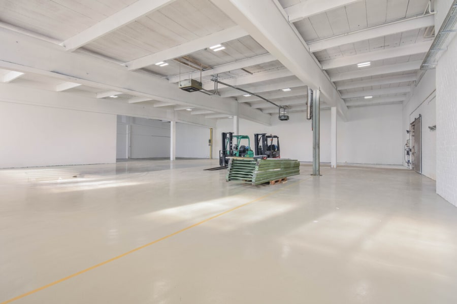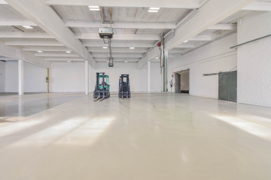 Die Halle ist mit LED-Beleuchtung ausgestattet und erhält aktuell einen neuen, belastbaren Hallenboden. Die auf den Bildern teilweise noch sichtbaren Bodenflächen entsprechen noch nicht dem finalen Ausstattungszustand. Der neue Boden wird eine durchgängige, für Lager- und Logistikzwecke geeignete Oberfläche bieten. Neben der Lagerfläche stehen ca. 40 m² Nebenflächen mit Flur, WC, Dusche und Waschmaschinenanschluss zur Verfügung. Ein separates Büro mit ca. 30 m² bietet zusätzliche Nutzungsmöglichkeiten für Verwaltung oder Disposition.