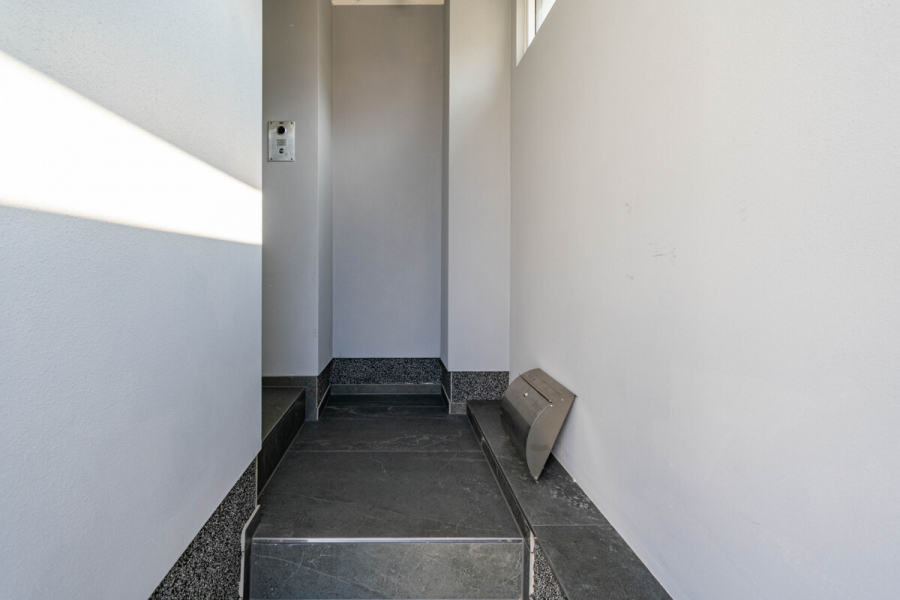 Seitlicher Zugang entlang der Terrasse mit Abgang in den Keller und Zugang zum Hauswirtschaftsraum – funktional durchdacht und alltagsnah.