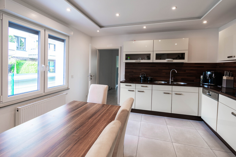 • Geräumige Durchgangsküche mit Platz für Esstisch