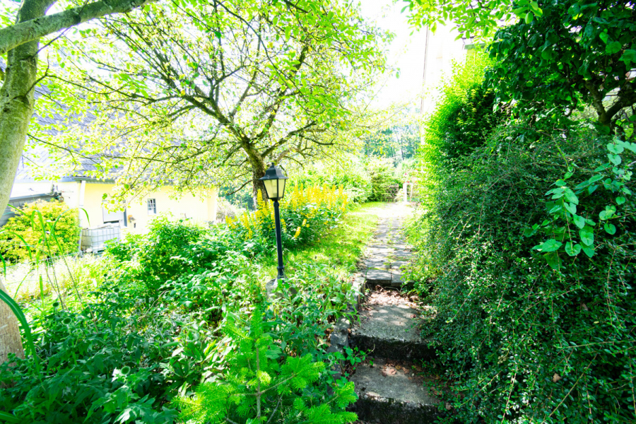 Vor, hinter und neben dem Haus befinden sich großzügige Gartenflächen mit ansprechendem alten Strauch- und Baumbestand.