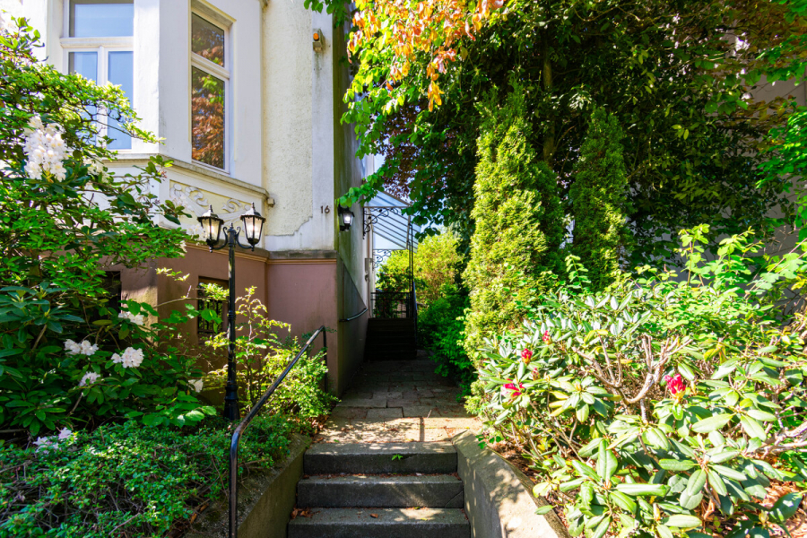 Das einseitig angebaute, 2,5-geschossige Gründerzeithaus wurde im Jahr 1905 auf einem451 m² großen Grundstück errichtet. Mit seiner klassischen Fassadengestaltung und der unmittelbaren malerischen Nachbarschaft fügt sich die Immobilie harmonisch in eine ruhige und zugleich zentral gelegene Straße der beliebten Solinger Südstadt ein.