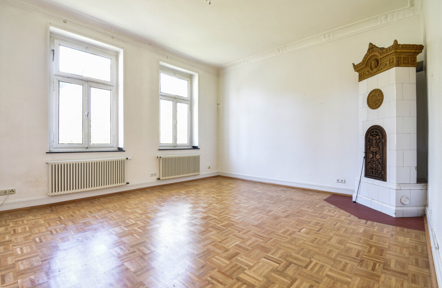 Charakteristische Elemente der Bauzeit wie rund drei Meter hohe Decken, kunstvolle Stuckverzierungen sowie große, hohe Fenster schaffen eine lichtdurchflutete und gleichzeitig behagliche Wohnatmosphäre. Zur Straßenseite hin verfügen die Räume über Loggien, die zum entspannten Verweilen einladen.