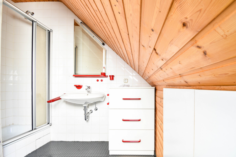 Die in dem Jahr 1976 modernisierten Duschbäder verbinden zeitgemäßen Komfort mit dem historischen Ambiente des Hauses. Die teilweise zweifach verglasten Kunststofffenster stammen ebenfalls aus den 70er Jahren. Die Beheizung erfolgt über eine Gasetagenheizung aus dem Jahr 2002. Die Elektroinstallation entspricht überwiegend dem Stand älterer Baujahre und bietet somit Potenzial für individuelle Modernisierungen.