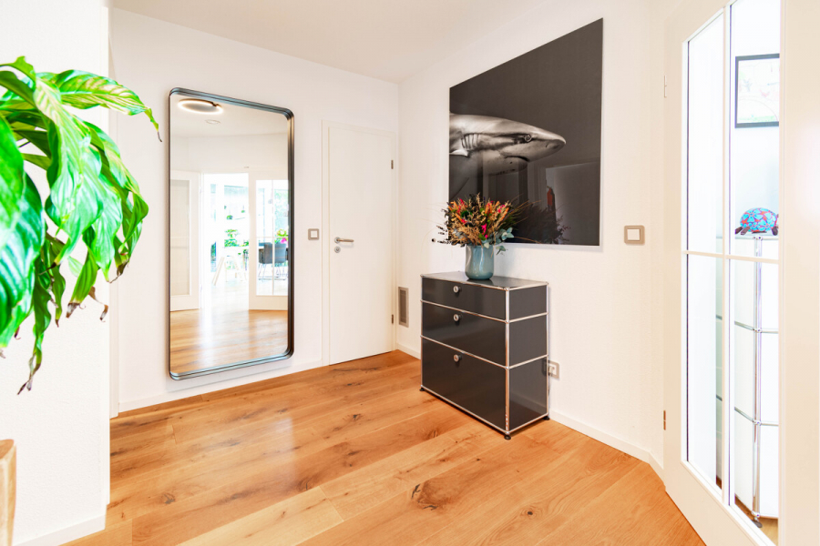 Dieses Einfamilienhaus überzeugt mit einer Kombination aus hochwertiger Ausstattung, nachhaltiger Energietechnik, Wellnesskomfort und einem traumhaften Grundstück mit unverbaubarem Blick ins Grüne. Wer ein repräsentatives, sofort bezugsfertiges Zuhause sucht, das Eleganz, Wohnkomfort und ökologische Verantwortung verbindet, wird hier fündig.