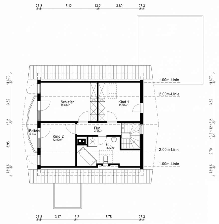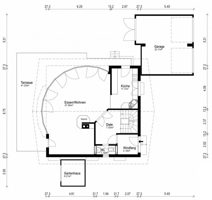 - Wohnfläche ca. 132 m² (EG + DG), Grundstück 727 m²