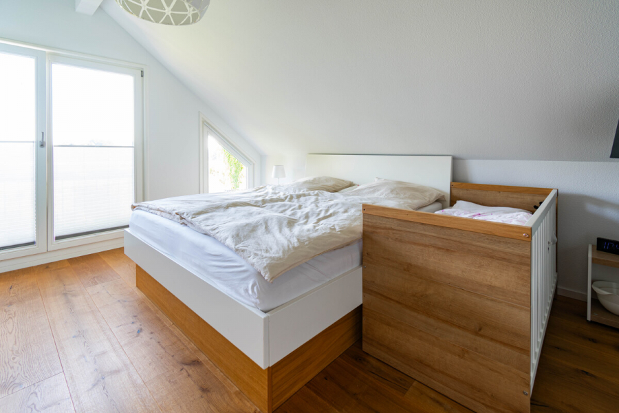 Dieses hochwertige Einfamilienhaus, errichtet als Fertighaus der renommierten Firma Weber, vereint zeitlose Architektur mit modernster Haustechnik und einem wohnlichen Ambiente, das keine Wünsche offenlässt. Auf einer Wohnfläche von ca. 132 m², verteilt auf Erd- und Dachgeschoss, bietet die Immobilie vier großzügige Zimmer, die in Verbindung mit dem rund 727 m² großen Grundstück ein Zuhause mit Wohlfühlfaktor auf höchstem Niveau schaffen.