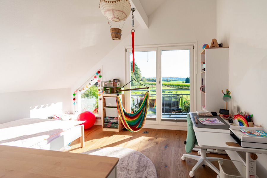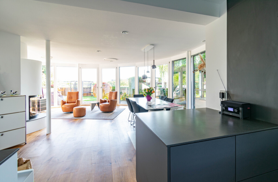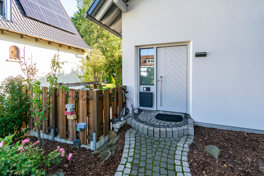 Modernes Weber-Fertighaus mit Blick. Komfort, Energietechnik A+ und großer Garten.