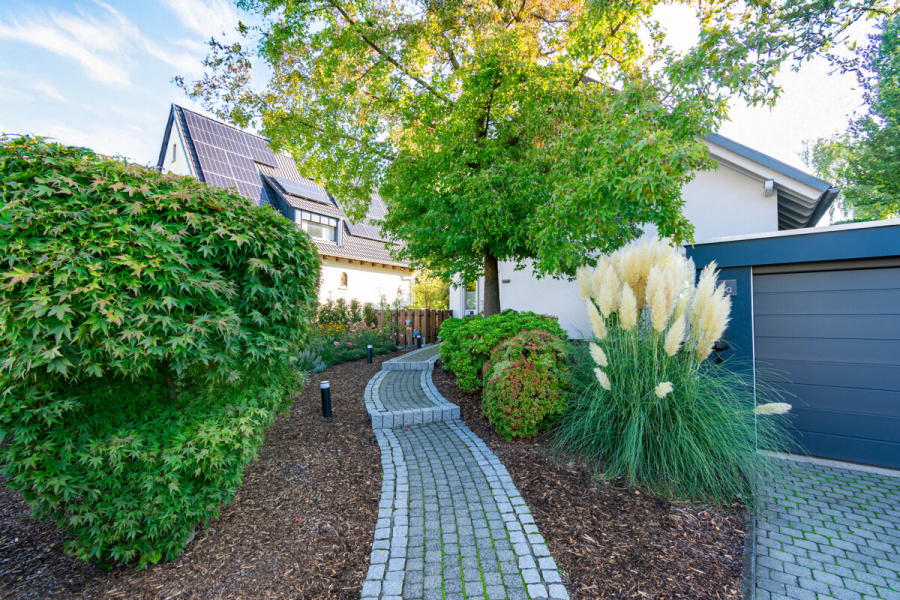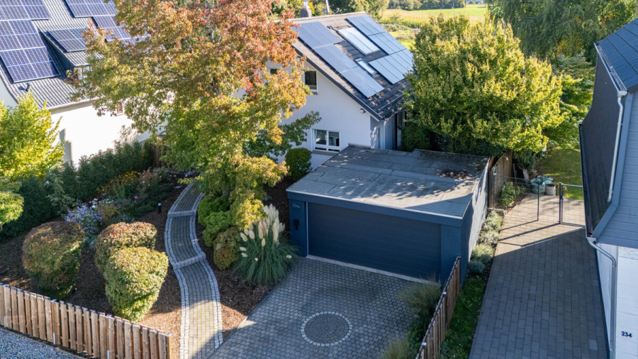 Das Haus ist voll unterkellert und bietet neben großzügigem Stauraum auch einen Wellnessbereich mit Sauna und Dusche. Die Doppelgarage mit elektrischem Tor verfügt über einen direkten Zugang in den Garten und damit ins Haus. Zusätzlich ist sie mit einer Ladesäule für E-Mobilität ausgestattet – ein Pluspunkt für zukunftsorientiertes Wohnen.