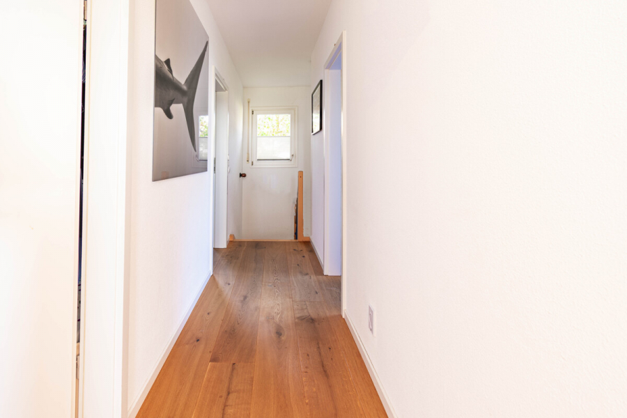 Die Haustechnik befindet sich auf dem neuesten Stand: Eine neue Luft-Luft-Wärmepumpe mit Photovoltaikanlage und Energiespeicher sorgt in Kombination mit einem Belüftungssystem für alle Wohnräume für eine Energieeffizienzklasse A+. Eine Regenwasserzisterne für WC und Gartenbewässerung runden das nachhaltige Konzept ab.