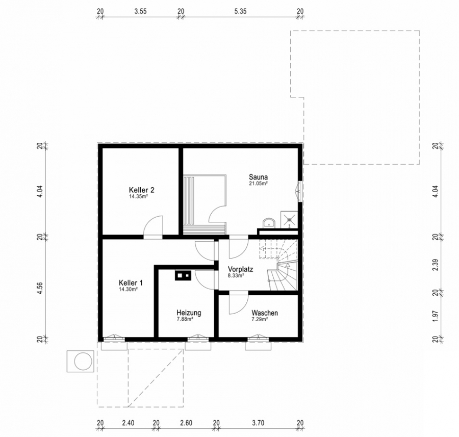 - Sauna mit Dusche im Keller, großzügiger Stauraum
