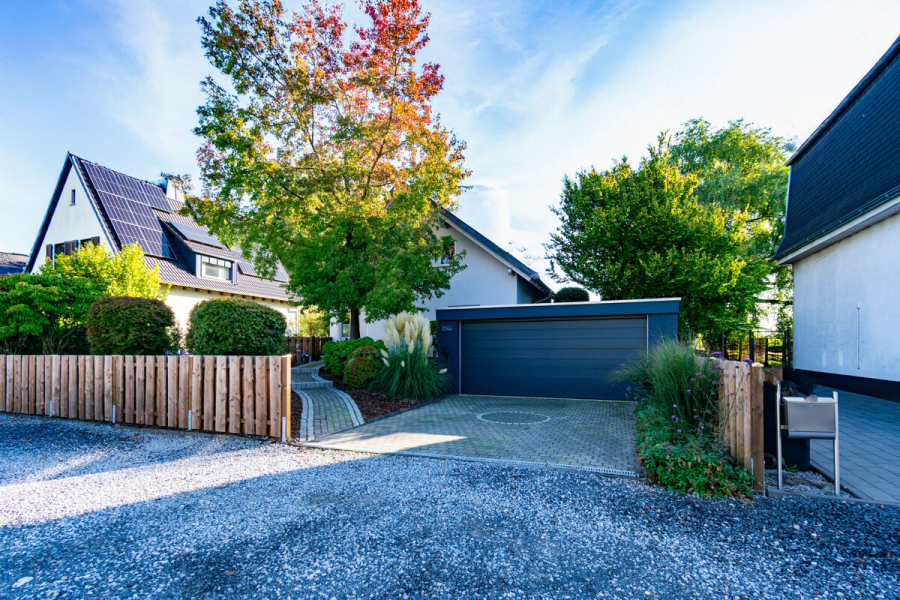 - Doppelgarage mit elektrischem Außentor, Zugang direkt in Garten/Haus, Ladesäule für E-Auto