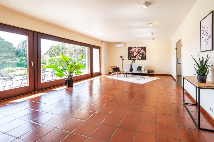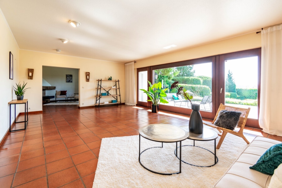 Bereits beim Betreten des Hauses empfängt Sie ein helles Entrée, das einen großzügigen Übergang in den offen gestalteten Wohn- und Essbereich bildet. Die hochwertige Küche ist harmonisch integriert und lädt mit fließendem Übergang in den Wohnbereich zu genussvollen Stunden ein. Von hier aus gelangen Sie auf die einladende, teils überdachte Terrasse – mit herrlichem Blick in den weitläufigen, nicht einsehbaren Garten, der mit seiner pflegeleichten Gestaltung zahlreiche Nutzungsmöglichkeiten bietet.