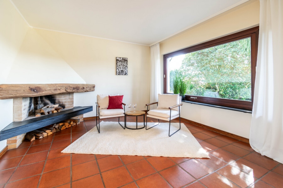 Das Erdgeschoss besticht durch seine offene Raumstruktur und eine angenehme, helle Belichtung. Der Wohn-/ Essbereich verfügt über viel Raum und ein Kaminzimmer – ideal für gesellige Abende ebenso wie für entspannte Rückzugsorte.