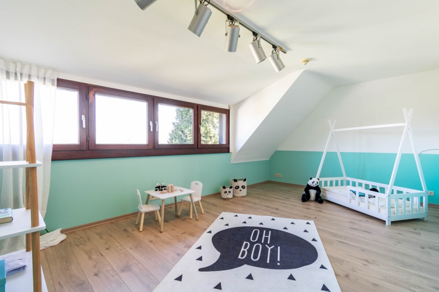 Im Obergeschoss erwarten Sie insgesamt vier komfortable Zimmer, die sich flexibel als Schlafzimmer, Kinderzimmer, Gästezimmer oder Homeoffice nutzen lassen. Ein Schlafzimmer verfügt über einen direkten Zugang zu einem Masterbad mit angrenzendem Ankleidebereich. Zusätzlich steht auf dieser Etage ein kleineres Duschbad zur Verfügung.