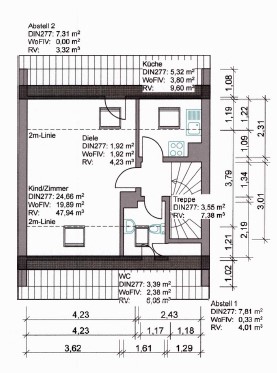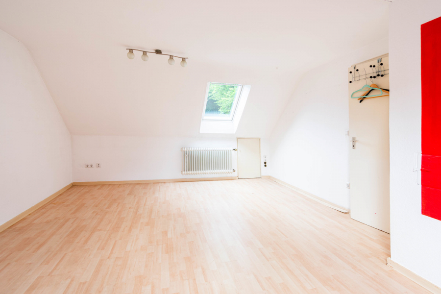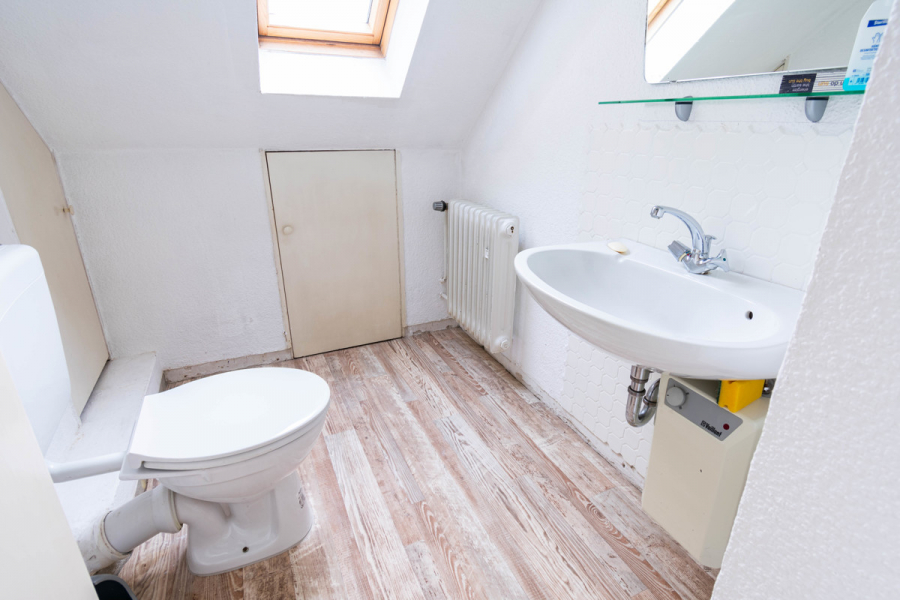 Im Obergeschoss verteilen sich ca. 56 m² Wohnfläche auf zwei helle Zimmer, eine weitere Küche ( der Zimmer), eine wohnliche Diele sowie ein Badezimmer mit Badewanne. Der einladende Studiobereich im Dachgeschoss des Hauses bietet auf ca. 53 m² zwei weitere wohnlich ausgebaute Räume, zusätzliche Nutzungs- und Rückzugsmöglichkeiten bei angenehmer Belichtung. Ein weiteres WC befindet sich hier. Diese Flächen sind in der Wohnfläche nicht enthalten.