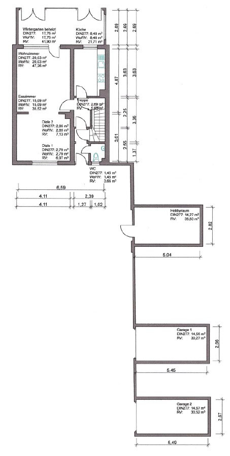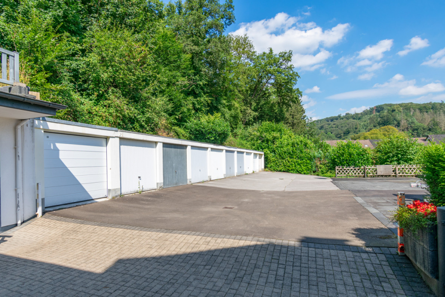 Die beiden zum Haus gehörenden Garagen befinden sich unmittelbar vor der Immobilie.