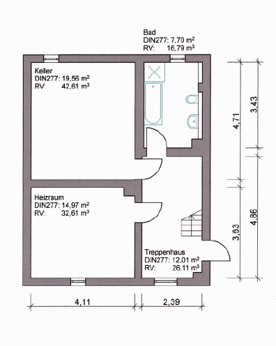 Im Kellergeschoss des Hauses erwartet Sie neben den üblichen Hausanschluss- und Nutzräumen auch ein weiterer Raum für die Lagerung sämtlicher temporär genutzten Gegenstände, sowie ein Badezimmer mit Badewanne und Dusche.
