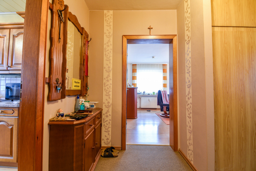 Im aktuellen Zustand erwirtschaftet das Mehrfamilienhaus eine Jahresnettokaltmiete von 32.076€, wobei eine Wohnung noch zu vermieten wäre. Dies ist die aktuelle Wohnung, die vom Eigentümer bewohnt wird – dieser wird ab Verkauf in die gerade modernisierte EG-Wohnung ziehen und die angegebene Miete zahlen.
