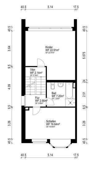 - Obergeschoss mit Schlafzimmer und großem Kinderzimmer