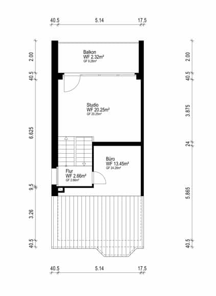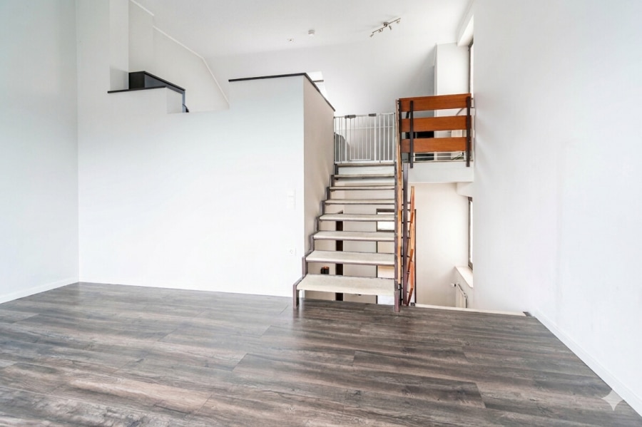 Das Dachgeschoss bietet mit einem offenen Studio und zusätzlichem Raum, der sich beispielsweise als Büro nutzen lässt, eine besonders interessante Erweiterung der Wohnfläche. Die erhöhte Deckenhöhe im Studio sorgt für ein angenehmes Raumgefühl und verleiht dieser Ebene eine besondere Qualität. Ein kleiner Balkon ergänzt diesen Bereich sinnvoll.