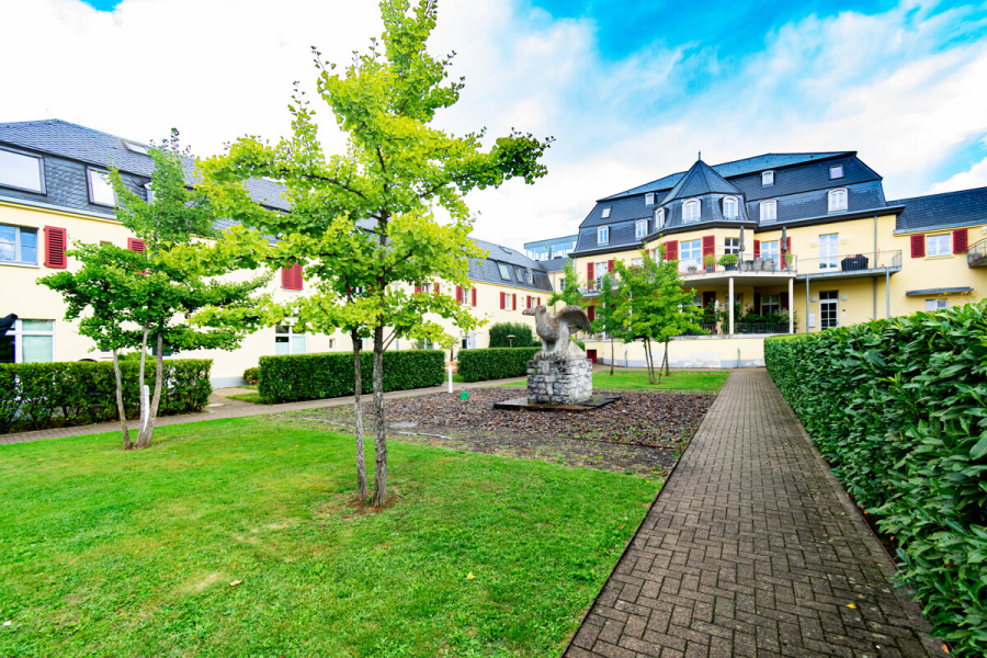 Eine Maisonettewohnung im Stil eines Reihenendhauses im Kutschenhaus mit Terrasse/Garten, ca. 96 m² Wohnfläche, Keller im Hauptschloss, große Einzelgarage mit elektrischem Sektionaltor, ein oberirdischer PKW-Stellplatz.
