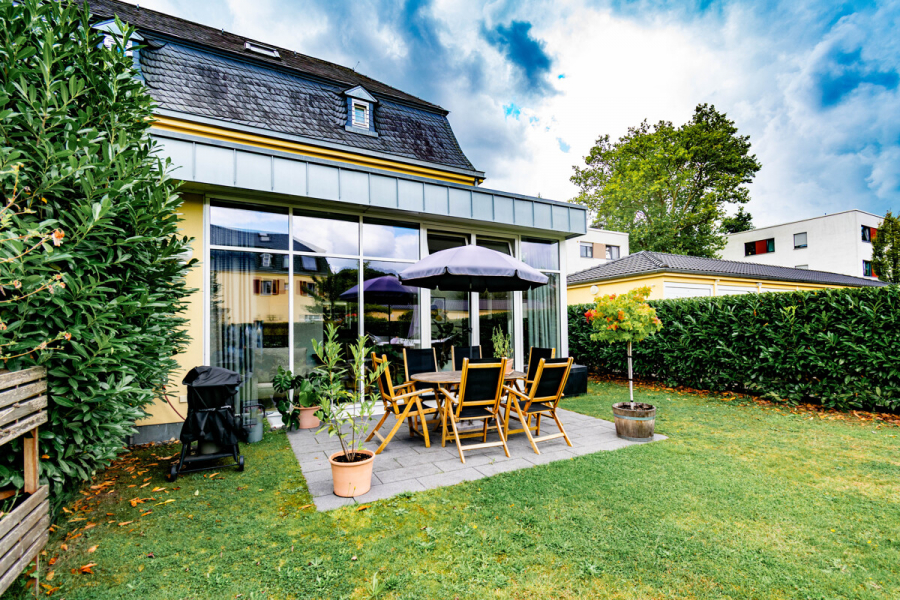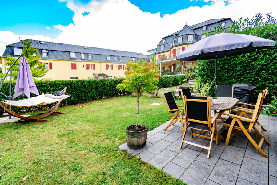 Die Terrasse nebst kleinem Garten erreichen Sie direkt vom Wohnraum.