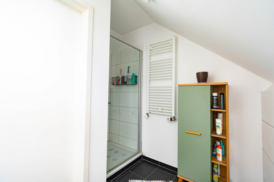 • DG = Schlaf-/Arbeitsraum, Duschbad mit Fenster, Flur mit Treppe.