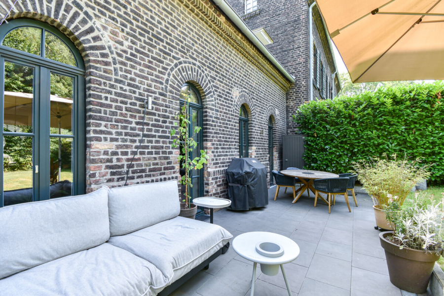 Auf einer kürzlich erneuerten und vergrößerten Terrasse haben Sie ausreichend Platz für alle Bedürfnisse. Zu beiden Seiten sind Gartenanteile entstanden, die viel Abstand und Privatsphäre entstehen lassen.