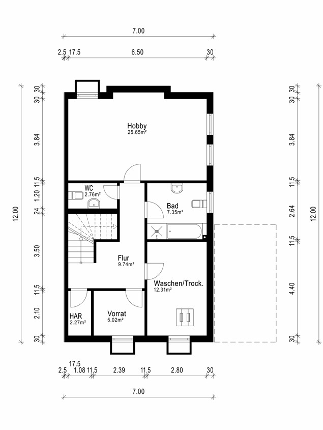 • Ursprünglich vorgesehene Wendeltreppe ins DG