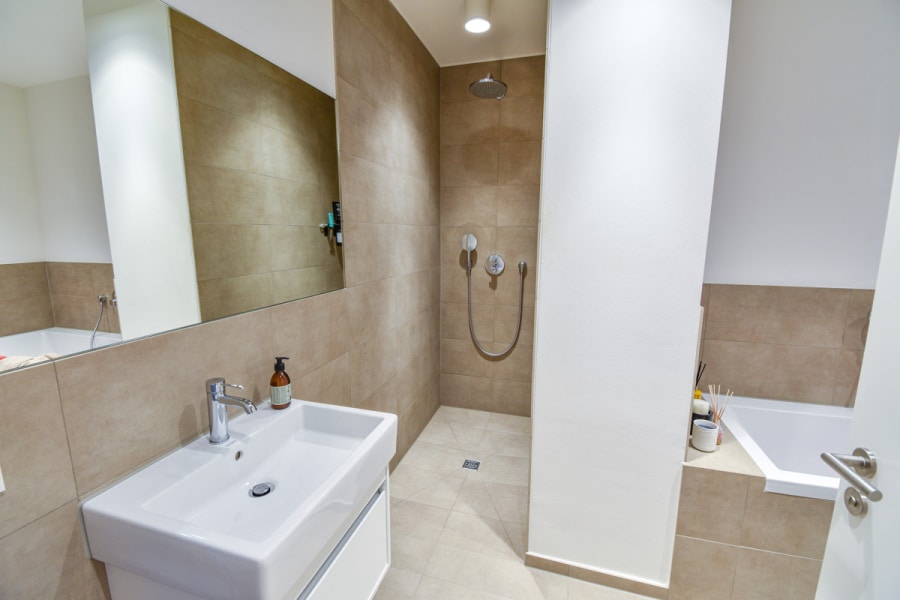 • großzügiges Badezimmer mit Walk-In-Dusche und Badewanne