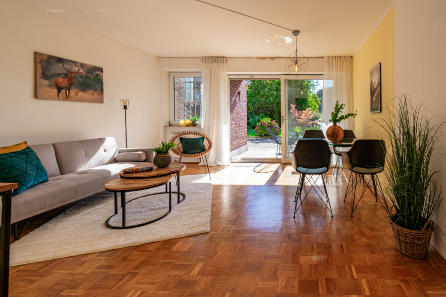Die großzügige Terrasse bietet durch die geschützte Lage eine hohe Aufenthaltsqualität und erweitert den Wohnraum in den Sommermonaten spürbar. Ergänzt wird das Angebot durch den zur Wohnung gehörenden Tiefgaragenstellplatz, der kurze Wege und Komfort garantiert.