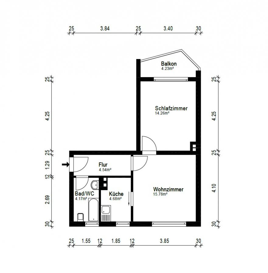Wohnfläche ca.44,49 m²