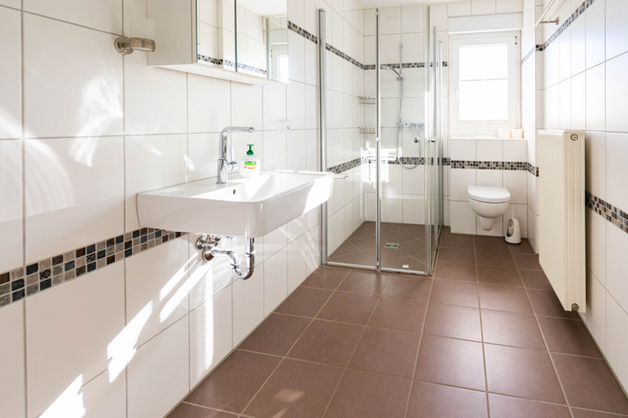 Zwei verschließbare Kellerräume und/oder Hobbyräume, eine Dusche sowie ein eigener Wasch- und Trockenraum runden das Platzangebot ab.