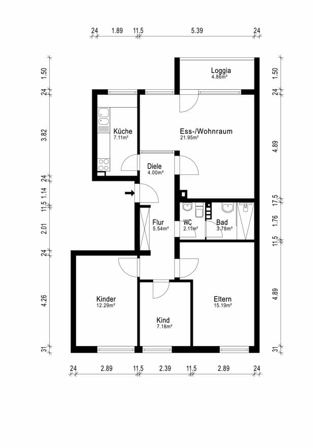 Die rundum sanierte Wohnung besticht durch einen klar strukturierten Grundriss. Vier großzügige Zimmer eröffnen vielfältige Nutzungsmöglichkeiten – als klassisches Familienheim, mit Raum für Homeoffice und Gäste oder als individuelles Wohnkonzept mit viel Gestaltungsfreiheit.