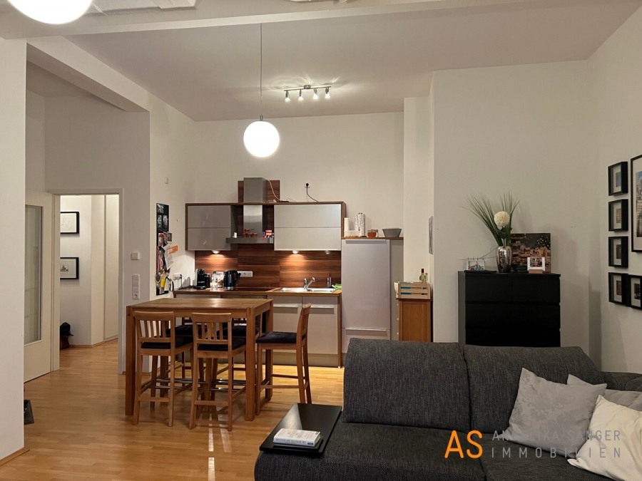 - 1 großes Wohn-/Esszimmer mit offener Küche