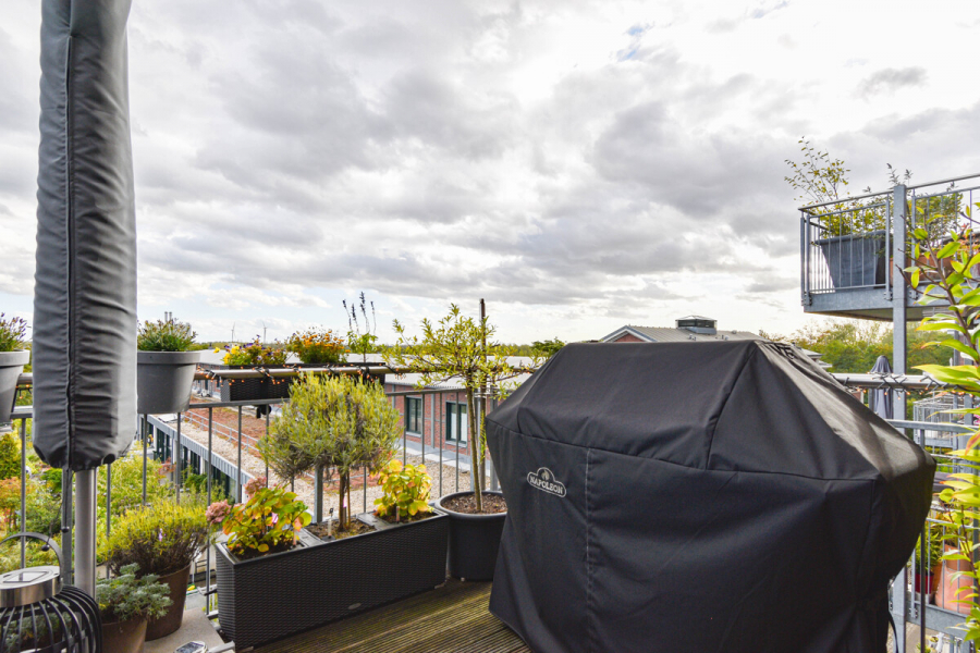 Der Mittelpunkt der Wohnung ist das weitläufige Wohn-/Esszimmer mit offenem Küchenbereich – ein großzügig geschnittener Raum, der Wohnqualität und Alltagstauglichkeit auf hohem Niveau verbindet. Vom Wohnbereich gelangen Sie auf den ca. 11 m² großen Balkon, der durch seine geschützte Lage eine uneinsehbare Freifläche mit viel Privatsphäre bietet.