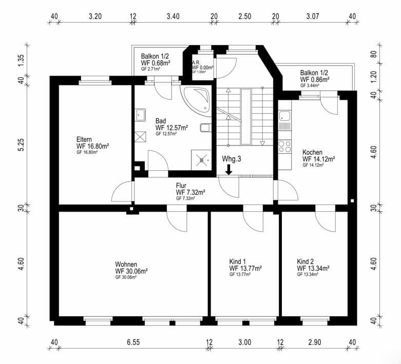 • Alle Zimmer vom Flur erreichbar (ein Zimmer über die Küche)