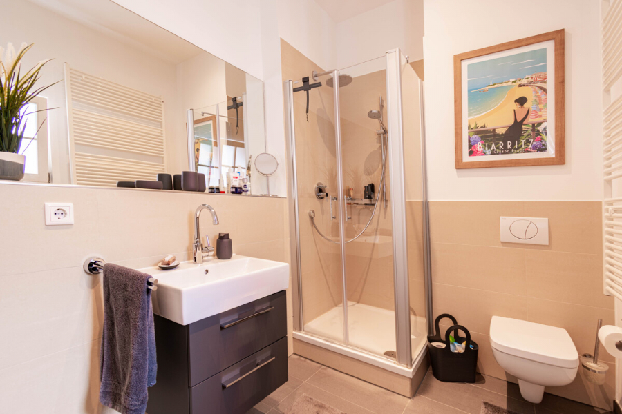 Ein weiteres Badezimmer – ebenfalls mit Dusche ausgestattet – ergänzt das Angebot und bietet zusätzlichen Komfort für Gäste oder die Nutzung durch mehrere Personen.