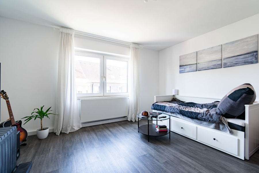 Die Ausstattung ist ansprechend: Ein neuwertiger Klick-Vinylboden zieht sich einheitlich durch die Wohnräume, während isolierverglaste Kunststofffenster für eine gute Energieeffizienz sorgen. Die überwiegend elektrisch betriebenen Rollläden bieten zusätzlichen Komfort und Lichtschutz.
