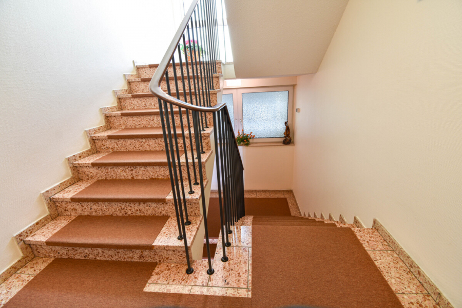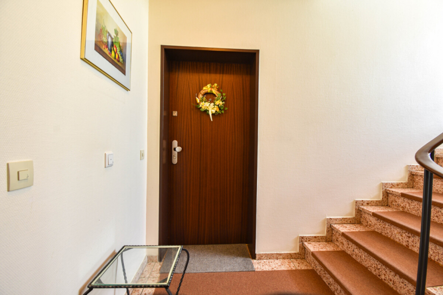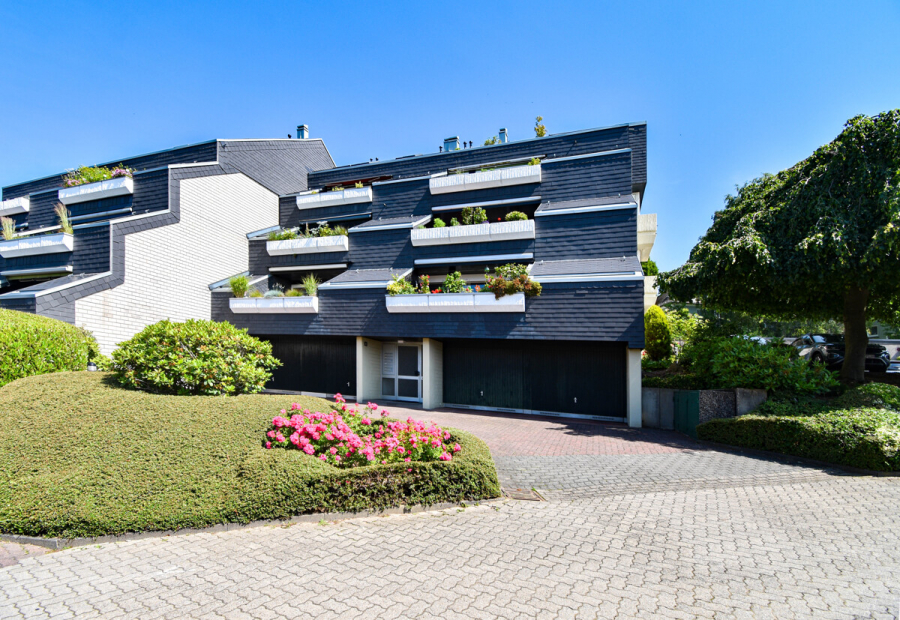 Diese charmante Drei-Zimmer-Wohnung befindet sich in einer architektonisch geschickt eingebetteten Lage innerhalb eines gepflegten Wohnkomplexes in angenehm ruhigem Umfeld. Vom vorderen Hauseingang aus über wenige Stufen erreichbar – öffnet sich jedoch nach hinten hinaus auf die Höhe eines klassischen ersten Obergeschosses. Dank dieser hanglagigen Bauweise profitieren Sie von einer geschützten, zurückgezogenen Wohnlage und genießen gleichzeitig einen Blick ins gepflegte Gartengrün.