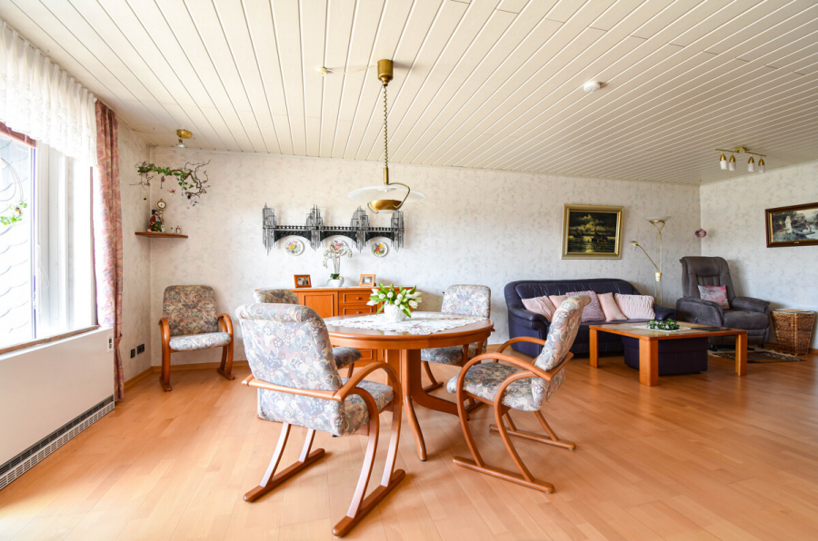 Diese Wohnung bietet eine seltene Gelegenheit in angenehm erhöhter, gartenorientierter Lage: mit großem Balkon, flexibler Raumstruktur, Garage und wirtschaftlich solider Basis. Ein attraktives Angebot für alle, die geschützt, ruhig und naturnah wohnen möchten, ohne auf infrastrukturelle Nähe und durchdachte Ausstattung zu verzichten – mit Raum für persönliche Aufwertung.