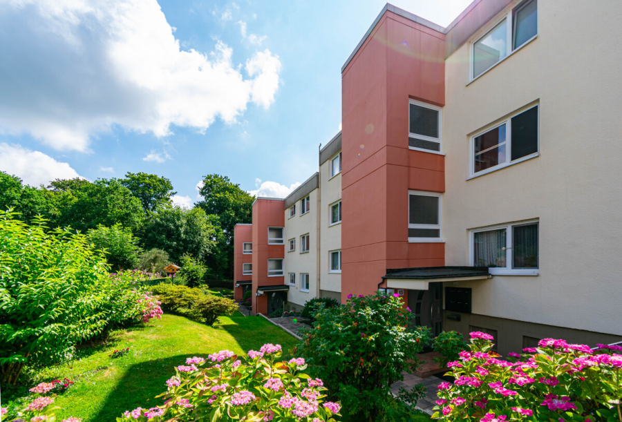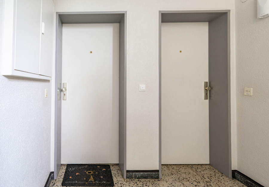 In einem sehr gepflegten Mehrfamilienhaus mit nur sechs Parteien erwartet Sie diese hochwertig modernisierte Drei-Zimmer-Wohnung im 1. Obergeschoss – Teil einer gut verwalteten Eigentümergemeinschaft mit insgesamt 18 Einheiten (Hausnummern 35–39). Die Lage in einer ruhigen Sackgasse schafft nicht nur eine angenehme Wohnatmosphäre, sondern auch ein hohes Maß an Privatsphäre und Lebensqualität.