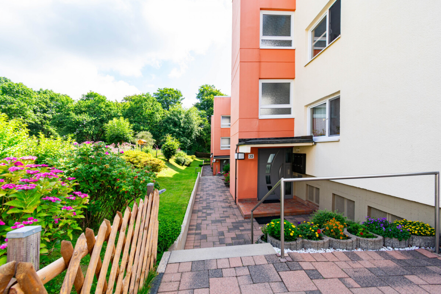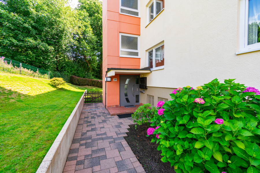 Die Immobilie liegt in angenehmer Sackgassenendlage, umgeben von viel Grün und in einem gepflegten Wohngebiet mit wenig Verkehr – perfekt für alle, die sich ein entspanntes und ruhiges Zuhause wünschen. Die erhöhte Lage ermöglicht stellenweise einen schönen Ausblick über das Tal und sorgt für eine besondere Wohnatmosphäre mit Rückzugspotenzial.