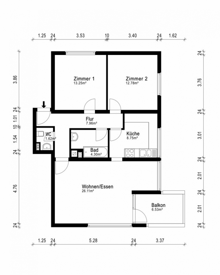 Wohnfläche ca.76,40 m²